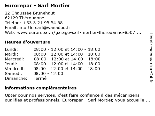 Termes de recherche pour Eurorepar - Sarl Mortier:sarl, eurorepar, mortier |