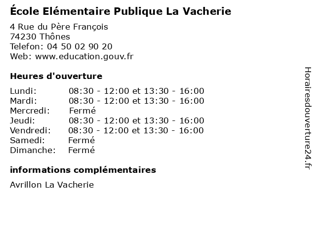 | Vendredi | 08:30-12:00 et 13:30-16:00 |