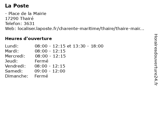 | Lundi | 08:00-12:15 et 13:30-18:00 |