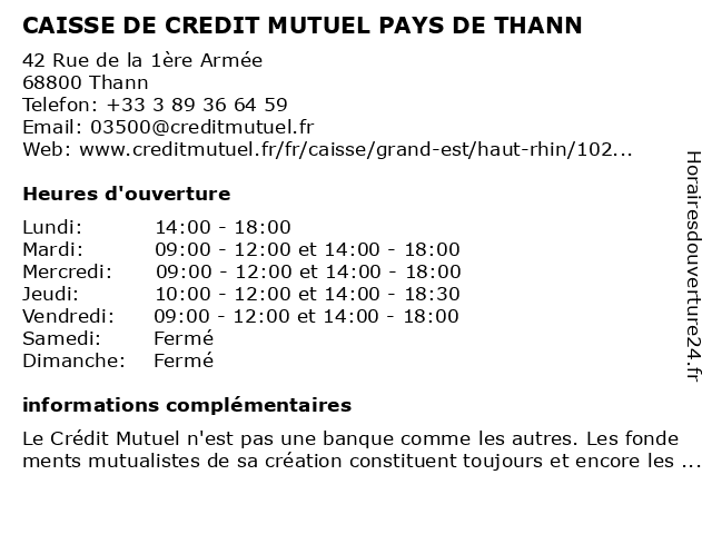 Termes de recherche pour CAISSE DE CREDIT MUTUEL PAYS DE THANN:de, thann, crédit, mutuel, caisse, pays |