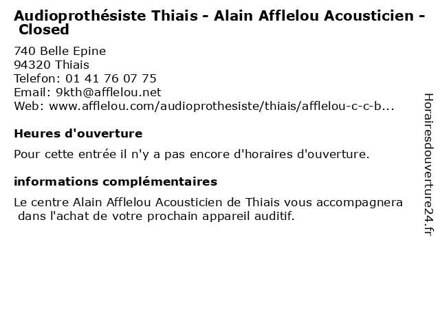 Termes de recherche pour Audioprothésiste Thiais - Alain Afflelou Acousticien - Closed:alain, afflelou, thiais, acousticien, audioprothésiste, closed, audiologie, clinique médicale |