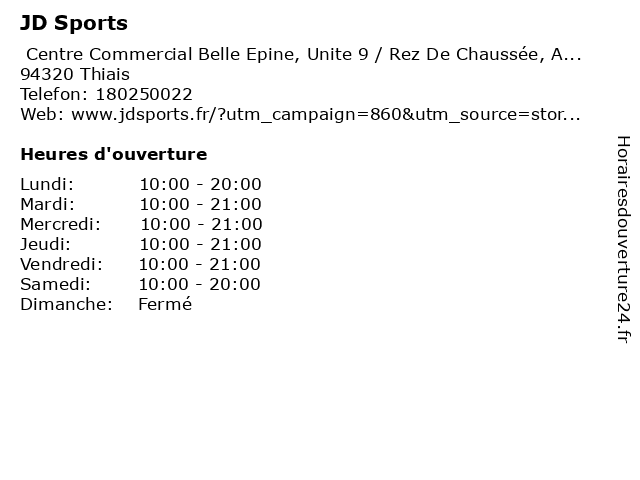 1 JD Sports (Distance: 6,59 km) 101 Avenue du Général de Gaulle, 94000 Creteil accessoires, basket, chaussures, jd, mode, porter, pret, sport, sports 2 JD Sports (Distance: 14,92 km) 2 Boulevard de l'Europe, 91000 Evry accessoires, basket, chaussures, jd, mode, porter, pret, sport, sports 3 JD Sports (Distance: 15,70 km) 234 Boulevard Du Mont D'Est, 93160 Noisy-Le-Grand articles de sport, jd, magasin de chaussures, magasin de vêtements pour enfants, magasin de vêtements pour femmes, magasin de vêtements pour hommes, mode, sports 4 JD Sports (Distance: 15,84 km) 234 Boulevard du Mont d'Est, 93193 Noisy-le-Grand alimentation, beauté & santé, culture & loisirs, enfants, high-tech, jd, maison & déco, mode, restaurants, sports 5 JD Sports (Distance: 15,90 km) Unit 128B Centre Commercial Rosny 2, Avenue De General De Gaulle, 93110 Rosny-Sous-Bois articles de sport, jd, magasin de chaussures, magasin de vêtements pour enfants, magasin de vêtements pour femmes, magasin de vêtements pour hommes, mode, sports 6 JD Sports (Distance: 15,93 km) 31 Rue D'Alsace Centre Commercial So Ouest, 92300 Levallois Perret articles de sport, jd, magasin de chaussures, magasin de vêtements pour enfants, magasin de vêtements pour femmes, magasin de vêtements pour hommes, mode, sports |