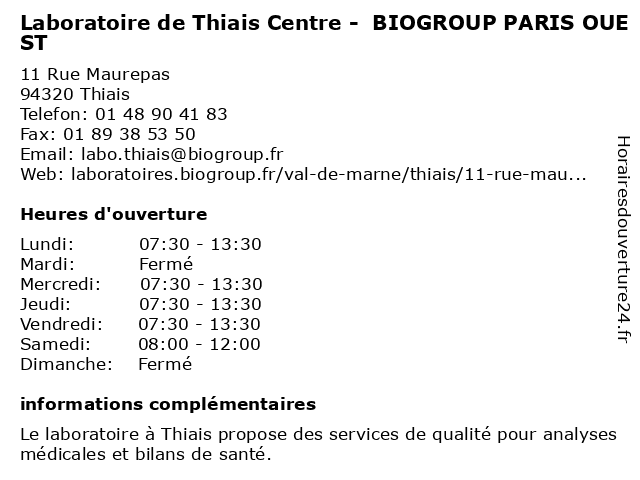 Termes de recherche pour Laboratoire de Thiais Centre - BIOGROUP PARIS OUEST:de, paris, laboratoire, centre, ouest, thiais, biogroup, dépistages, laboratoire de diagnostic |