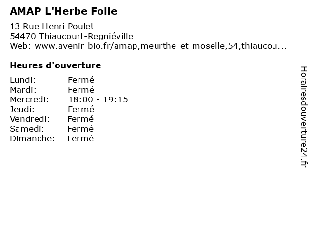 | Jeudi | Fermé |