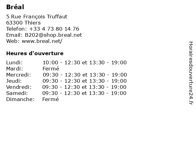 | Samedi | 09:30-12:30 et 13:30-19:00 |