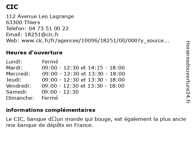 1 CIC (Distance: 21,11 km) 15 Avenue Jean Moulin, 63430 Pont Du Chateau cic, compagnie de téléphone, organisme d'assurance 2 CIC Agence (Distance: 21,82 km) 2 PLACE DE LA REPUBLIQUE, 63430 PONT DU CHATEAU agence, casteljaloux, cic, l'argent, l'épargne, la trésorerie, les banques, les finances, les prêts 3 CIC Agence (Distance: 28,58 km) 1 PLACE DES DOMES, 63800 COURNON D AUVERGNE agence, casteljaloux, cic, l'argent, l'épargne, la trésorerie, les banques, les finances, les prêts 4 CIC Banque Privée (Distance: 32,11 km) 160 Boulevard Gustave Flaubert, 63006 Clermont Ferrand banque, cic, compagnie de téléphone, organisme d'assurance, privée 5 Crédit Industriel et Commercial (CIC) (Distance: 32,11 km) 160 Boulevard Gustave Flaubert, 63006 Clermont-Ferrand agence, assurance, banque, cic, commercial, credit industriel et commercial, crédit, et, industriel 6 CIC (Distance: 32,21 km) 25 Rue De Paris, 03200 Vichy cic, compagnie de téléphone, organisme d'assurance |
