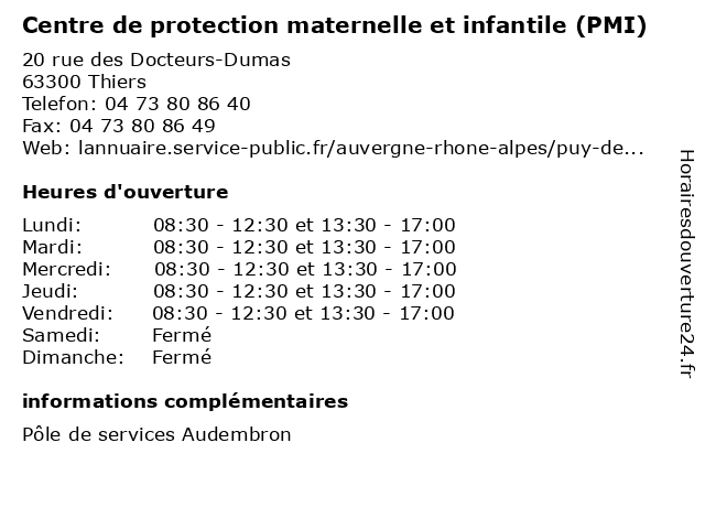 | Lundi | 08:30-12:30 et 13:30-17:00 |