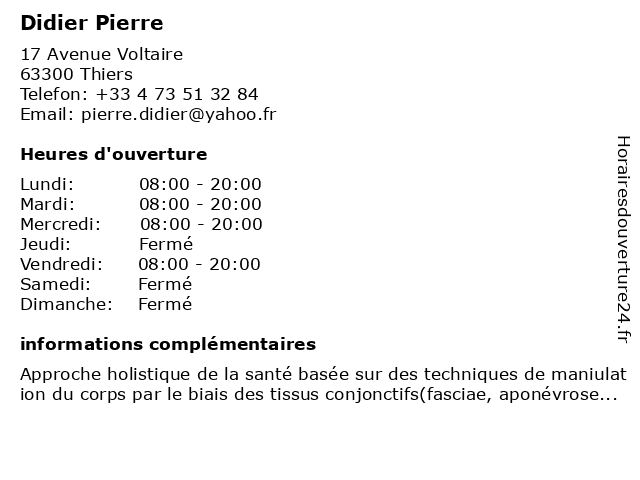 1 Géomètre-Expert HUBERT Didier (Distance: 0,33 km) 6 Avenue Léo Lagrange, 63300 Thiers didier, expert, géomètre, hubert 4 Fraicheur (Distance: 20,16 km) Octroi 13 Rue De l, 63520 St Dier D Auvergne alimentation, didier, divers, fraicheur, magasins, patrice, ventalon 5 Didier Moan - d m (Distance: 33,39 km) 9 Rue Des Varennes, 63170 Aubiere didier, holding, moan, sociétés 6 Dr. Didier Jacquet - Médecine générale (Consultation sur rendez-vous) (Distance: 33,40 km) 1 rue du commerce, 63200 Riom consultation, didier, docteur, dr., générale, jacquet, médecine, rendez, santé, sur, vous |