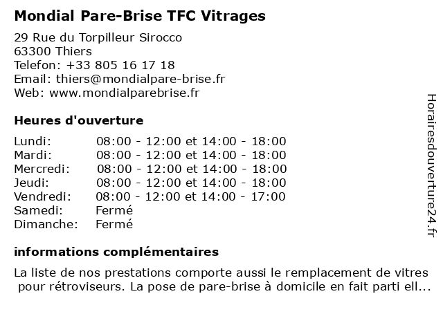 | Lundi | 08:00-12:00 et 14:00-18:00 |