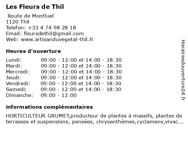 | Samedi | 09:00-12:00 et 14:00-18:30 |