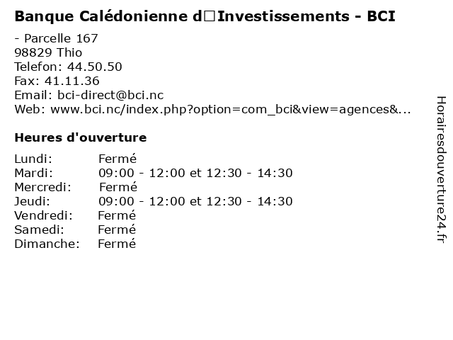 Termes de recherche pour Banque Calédonienne d’Investissements - BCI:services, crédit, banque, financement, bancaires, bci, caledonienne, d’investissements |