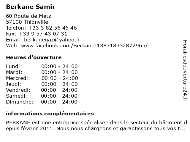 | Samedi | 00:00-24:00 |