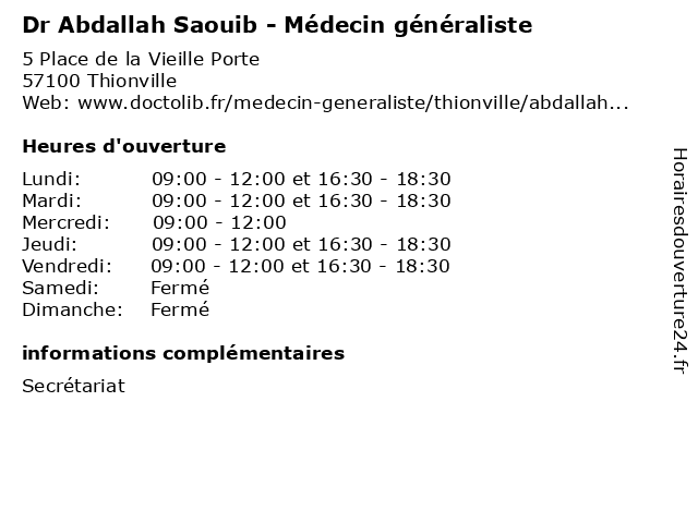 | Lundi | 09:00-12:00 et 16:30-18:30 |