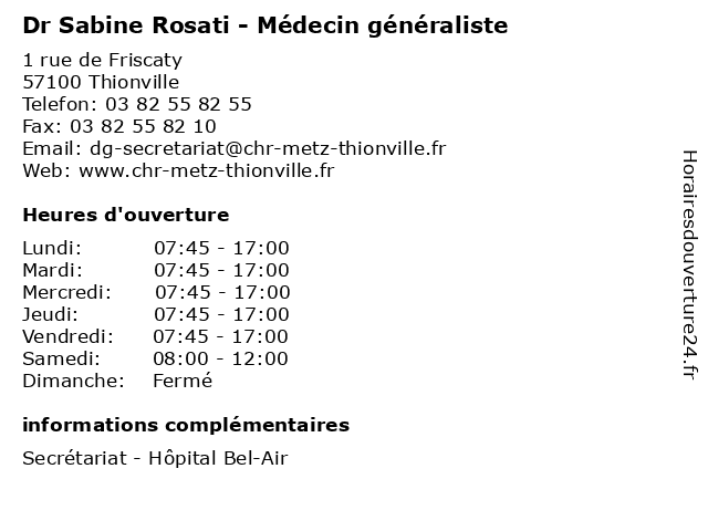 | Jeudi | 07:45-17:00 |
