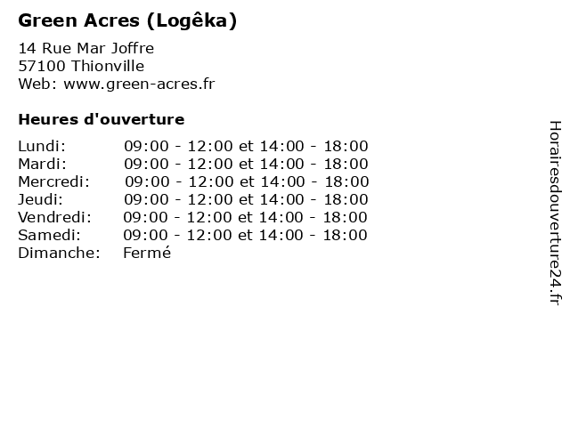 | Mardi | 09:00-12:00 et 14:00-18:00 |
