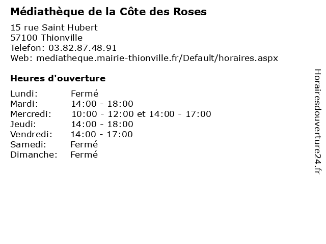 | Mercredi | 10:00-12:00 et 14:00-17:00 |