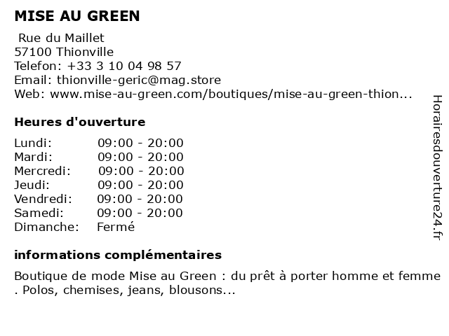 1 MISE AU GREEN (Distance: 1,85 km) 18 Rue du Four Banal, 57100 Thionville au, cardigans, chemise, doudoune, green, jeans, mise, pantalons, parka, polo, pulls, robes, sweat 2 MISE AU GREEN (Distance: 14,20 km) Z.I. Talange-Hauconcourt, 57525 Talange au, cardigan, chemise, doudoune, green, jeans, mise, pantalons, parka, polo, pulls, robes, sweat 3 MISE AU GREEN (Distance: 14,96 km) Rue de la Grande Rayée, 57280 Hauconcourt au, cardigans, chemise, doudoune, green, jeans, mise, pantalons, parka, polo, pulls, robes, sweat 4 MISE AU GREEN (Distance: 17,93 km) Voie Romaine, 57280 Semécourt au, cardigan, doudounes, doudounes sans manches, green, jeans, jupes, mise, parka, polos, pulls, robes, sweat 5 Green Acres (Batigère) (Distance: 0,43 km) 87 Rue Romains, 57100 Thionville acres, apartment rentals, batigère, green, home sales, real estate 6 Green Acres (Immobilière 3 Frontières) (Distance: 0,85 km) 95 Route De Verdun, 57180 Terville acres, apartment rentals, frontières, green, home sales, immobilière, real estate |