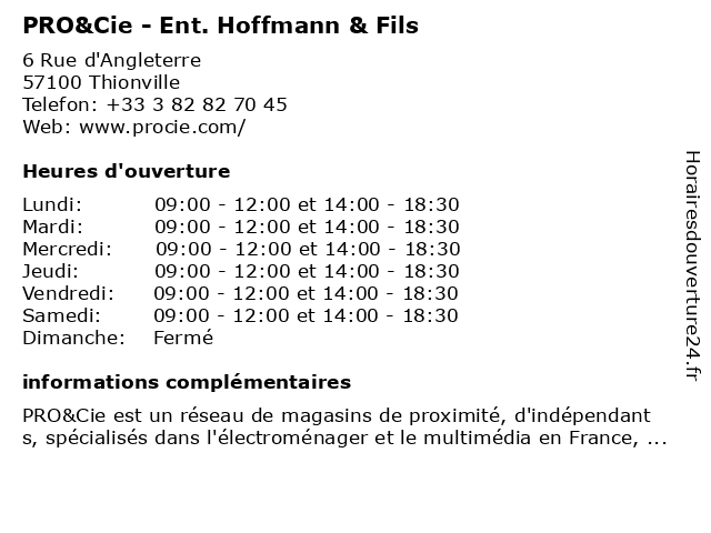 Termes de recherche pour PRO&Cie - Ent. Hoffmann & Fils:pro&cie, fils, hoffmann, ent. |