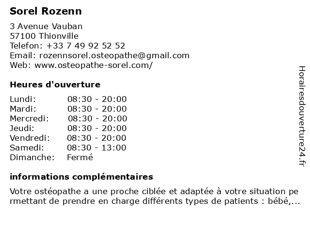 | Vendredi | 08:30-20:00 |