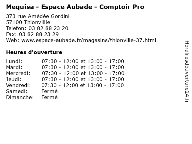 | Lundi | 07:30-12:00 et 13:00-17:00 |