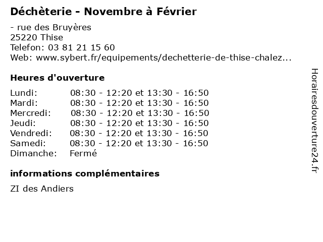 Termes de recherche pour Déchèterie - Novembre à Février:novembre, février, déchèterie, débarras, ordures, bennes, poubelles, détritus |
