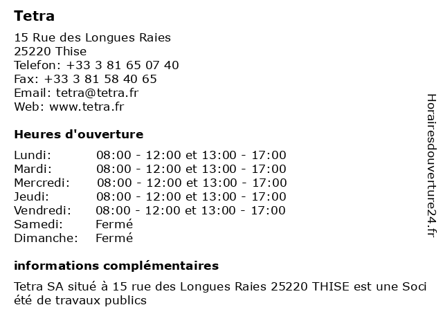 Tetra SA situé à 15 rue des Longues Raies 25220 THISE est une Société de travaux publics
