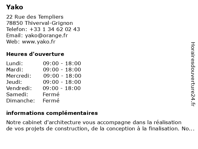 1 2 Yako (Distance: 25,39 km) 30 Rue du Docteur Finlay, 75015 Paris bento, gunkans, japonais, makis, restaurant, riz, sushis, yako 3 L'Orange Bleue (Distance: 27,47 km) 46 rue Périer, 92120 Montrouge attitude, bleue, club, fitness, forme, l'orange, orange, sport, yako 4 L'Orange bleue Activités - Yako Biking (Distance: 47,03 km) 17 rue de Précy, 60820 Boran-sur-Oise activités, biking, bleue, exercise, fitness, health, l'orange, outdoor, physical activities, sports, yako 5 L'Orange bleue Activités - Yako Pump (Distance: 47,03 km) 17 rue de Précy, 60820 Boran-sur-Oise activités, bleue, exercise, fitness, health, l'orange, outdoor, physical activities, pump, sports, yako 6 L'Orange bleue Activités - Yako Form Abdos (Distance: 47,03 km) 17 rue de Précy, 60820 Boran-sur-Oise abdos, activités, bleue, exercise, fitness, form, health, l'orange, outdoor, physical activities, sports, yako |