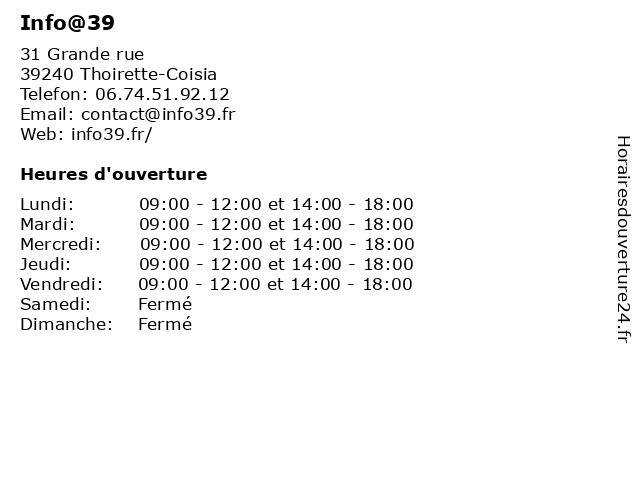 | Mardi | 09:00-12:00 et 14:00-18:00 |