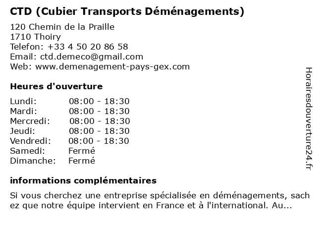 1 Déménagement CTD DEMECO Pays de Gex (Distance: 0,04 km) 120 Chemin de la Praille, 01710 Thoiry ctd, de, demeco, déménagement, gex, pays 2 BHBJ Transports (Distance: 9,90 km) 13 B Chemin du Levant, 01210 Ferney-Voltaire bhbj, routier, société, transport, transports 3 Harmonia Transports (Distance: 10,15 km) 5 Avenue des Sports, 01210 Ferney-Voltaire harmonia, transports 4 Design' Déménagements (Distance: 15,03 km) 600 Chemin de la Rassette, 01170 Vesancy design', déménagements 6 Transports Henri Vuaillat (Distance: 18,54 km) 16 Avenue Maréchal Leclerc, 01200 Valserhône henri, transports, vuaillat |