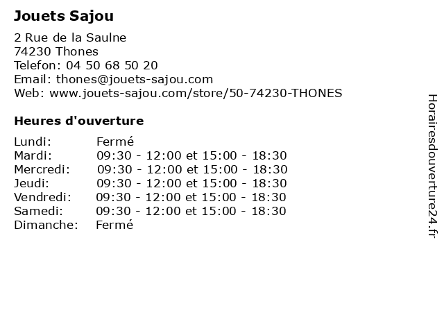 | Samedi | 09:30-12:00 et 15:00-18:30 |