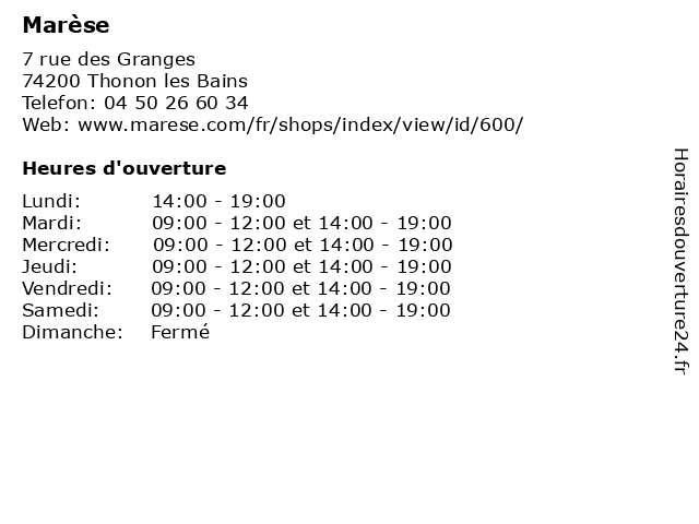 | Samedi | 09:00-12:00 et 14:00-19:00 |