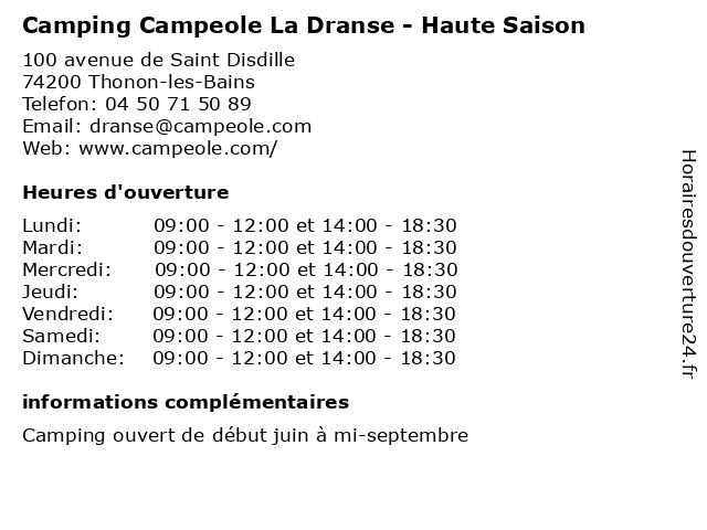 | Dimanche | 09:00-12:00 et 14:00-18:30 |