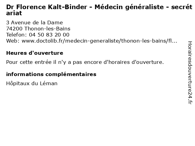 | Appeler Dr Florence Kalt-Binder - Médecin généraliste - secrétariat | |