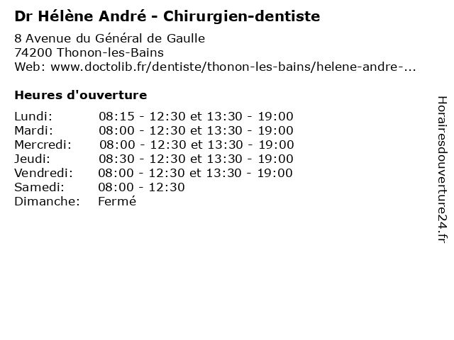 | Lundi | 08:15-12:30 et 13:30-19:00 |