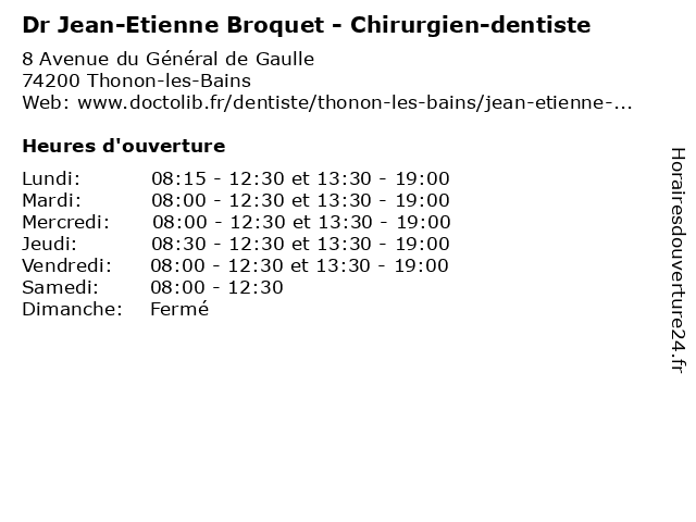 | Lundi | 08:15-12:30 et 13:30-19:00 |