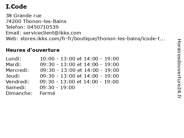 | Lundi | 10:00-13:00 et 14:00-19:00 |