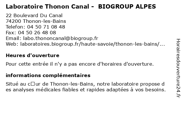 | Appeler Laboratoire Thonon Canal - BIOGROUP ALPES | |