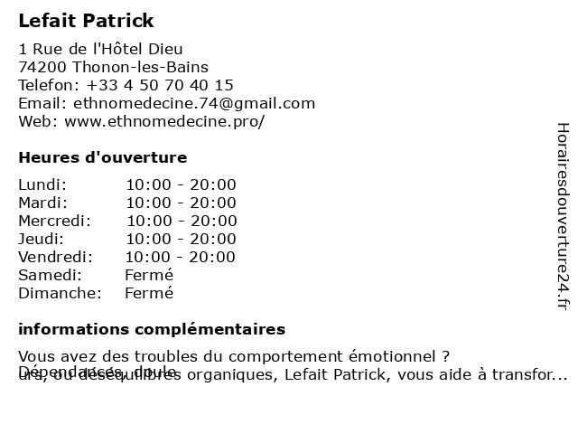 | Lundi | 10:00-20:00 |