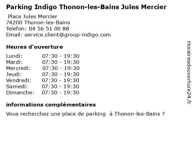 | Jeudi | 07:30-19:30 |