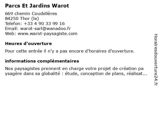 | Appeler Parcs Et Jardins Warot | |
