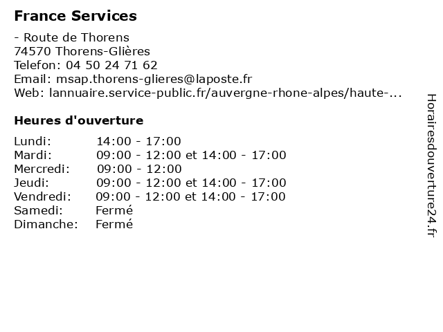 1 France Services (Distance: 13,52 km) 101 Route de la douane, 74130 Glières Val de Borne administration, communes, france, service, services, services publics 2 France Services (Distance: 17,95 km) - Place Germain Sommeiller, 74490 Saint-Jeoire administration, communes, france, service, services, services publics 3 France Services (Distance: 18,10 km) 4 Avenue de Genève, 74160 Saint-Julien-en-Genevois administration, communes, france, service, services, services publics 4 France Services (Distance: 18,65 km) 10 Rue Jean-Jacques-Rousseau, 74230 Thônes administration, communes, france, service, services, services publics 5 Immo de France - 4807 Immobilier (Distance: 4,05 km) 126 rue Carnot, 74800 La Roche-sur-Foron 4807, agency, agent, apartment, de, france, home, immo, immobilier, immobilières, real estate 6 Point Information Jeunesse (Distance: 7,54 km) 66 Place Saint-Maurice, 74800 Saint-Pierre-en-Faucigny administration, information, jeunesse, point, services, services publics |