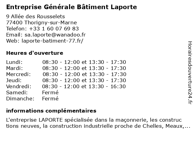 | Lundi | 08:30-12:00 et 13:30-17:30 |