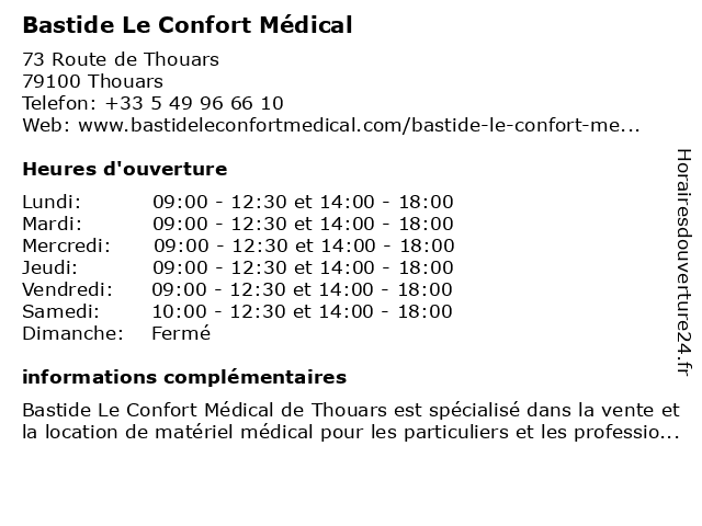 | Lundi | 09:00-12:30 et 14:00-18:00 |