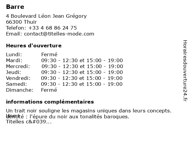 | Mardi | 09:30-12:30 et 15:00-19:00 |