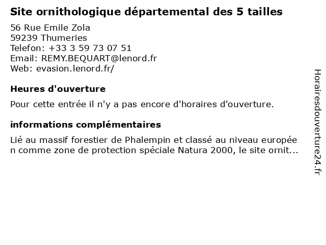 | Appeler Site ornithologique départemental des 5 tailles | |