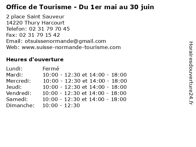 1 Office de Tourisme - 1er janvier au 31 mars (Distance: 0,00 km) 2 place Saint Sauveur, 14220 Thury Harcourt 1er, 31, au, de, horaires des musées, janvier, mars, office, restaurants, tourisme, transports 2 Office de Tourisme - Du 1er mai au 30 juin ,Du 1er au 30 septembre (Distance: 7,68 km) - Place du Tripot, 14570 Clecy 1er, 30, au, de, du, horaires des musées, juin, mai, office, restaurants, septembre, tourisme, transports 3 Office de Tourisme - 1er Juillet au 31 août (Distance: 7,68 km) - Place du Tripot, 14570 Clecy 1er, 31, août, au, de, et, horaires des musées, juillet, office, restaurants, tourisme, transports 4 Office de Tourisme - Janvier à Mars et d’Octobre à Décembre (Distance: 7,68 km) - Place du Tripot, 14570 Clecy de, d’octobre, décembre, et, horaires des musées, janvier, mars, office, restaurants, tourisme, transports 5 Orne Odon Tourisme - Les Vallées de l'Orne et de l'Odon (Distance: 12,68 km) 18 Route de la Vallées de l’Orne, 14320 Laize-Clinchamps commune, de, et, information, l'odon, l'orne, les, odon, office, orne, renseignement, tourisme, touristique, vallées, voyage 6 Domaine de Pontécoulant (10 Mars au 30 Avril) (Distance: 12,86 km) . Le Château, 14110 Pontécoulant 10, 30, au, avril, de, domaine, la druance et ses tresors, mars, pontécoulant, suisse normande/pays de conde |
