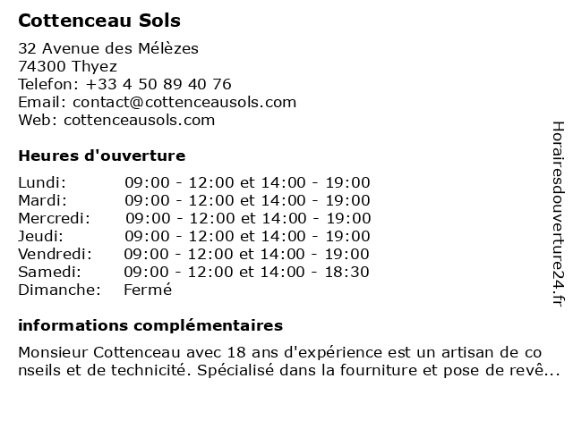 Samedi | 09:00-12:00 et 14:00-18:30 |