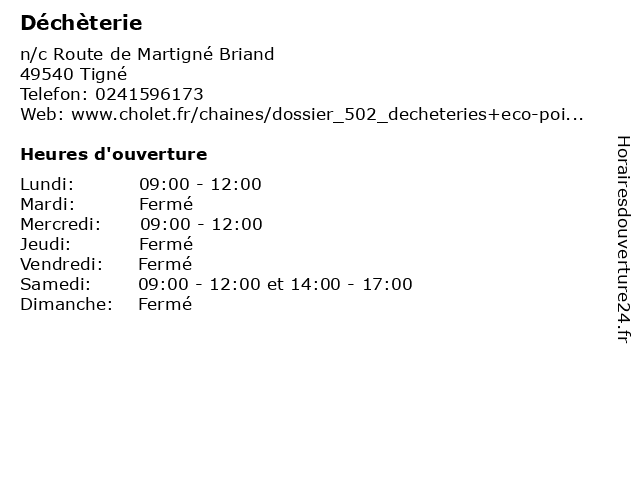 | Samedi | 09:00-12:00 et 14:00-17:00 |