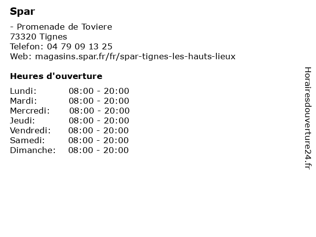 1 Spar (Distance: 0,37 km) - Rue des Almes, 73320 Tignes alimentation, légumes et de fruits, spar, épicerie 2 Spar (Distance: 8,72 km) - Immeuble Le Ruitor, 73150 Val d'Isere alimentaire, alimentation, courses, distributeur, spar, supermarché, supérette, épicerie 3 Spar (Distance: 15,56 km) - Le Charvet, 73700 Bourg Saint Maurice alimentation, légumes et de fruits, spar, épicerie 4 Spar (Distance: 16,31 km) - Belle Plagne-Haut, 73210 Macot La Plagne alimentaire, alimentation, courses, distributeur, spar, supermarché, supérette, épicerie 5 Spar (Distance: 16,35 km) - Galerie Marchande - Le Mercure, 73210 Mâcot-la-Plagne alimentation, légumes et de fruits, spar, épicerie 6 Spar (Distance: 16,83 km) - Lieu-dit la Traverse, 73350 Champagny-en-Vanoise alimentation, légumes et de fruits, spar, épicerie |