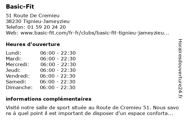 1 Basic-Fit (Distance: 15,37 km) Boulevard De L'arbonnas Centre Commercial Carrefour, 38080 L’Isle-d’Abeau basic, fit 6 |